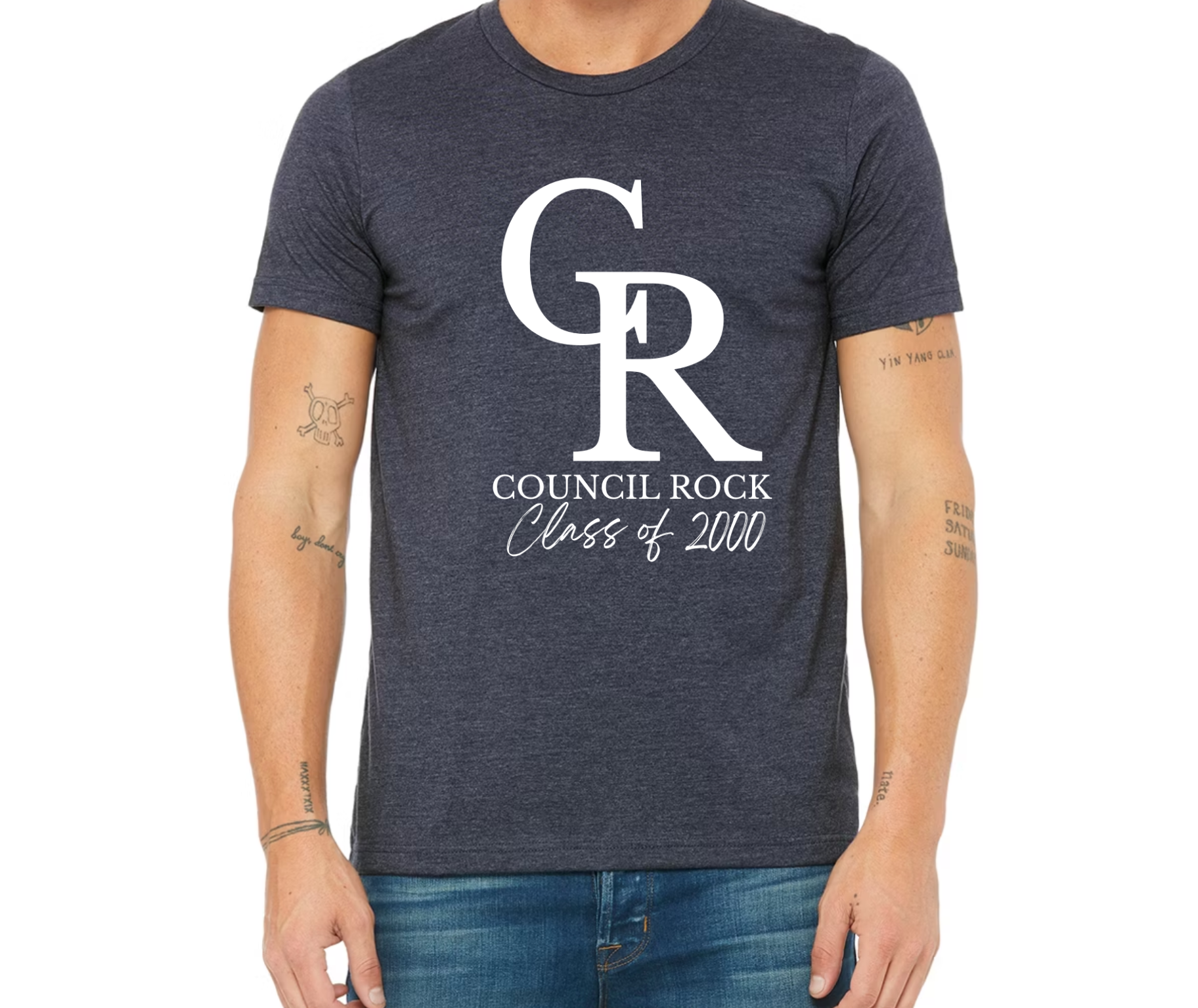 If you work at CR, cheer for someone at CR or are a CR alum yourself, make it known! Choose from 2 designs on two different blue shirts - Heather Royal Blue or Heather Navy. Youth sizes 2T through youth XL.